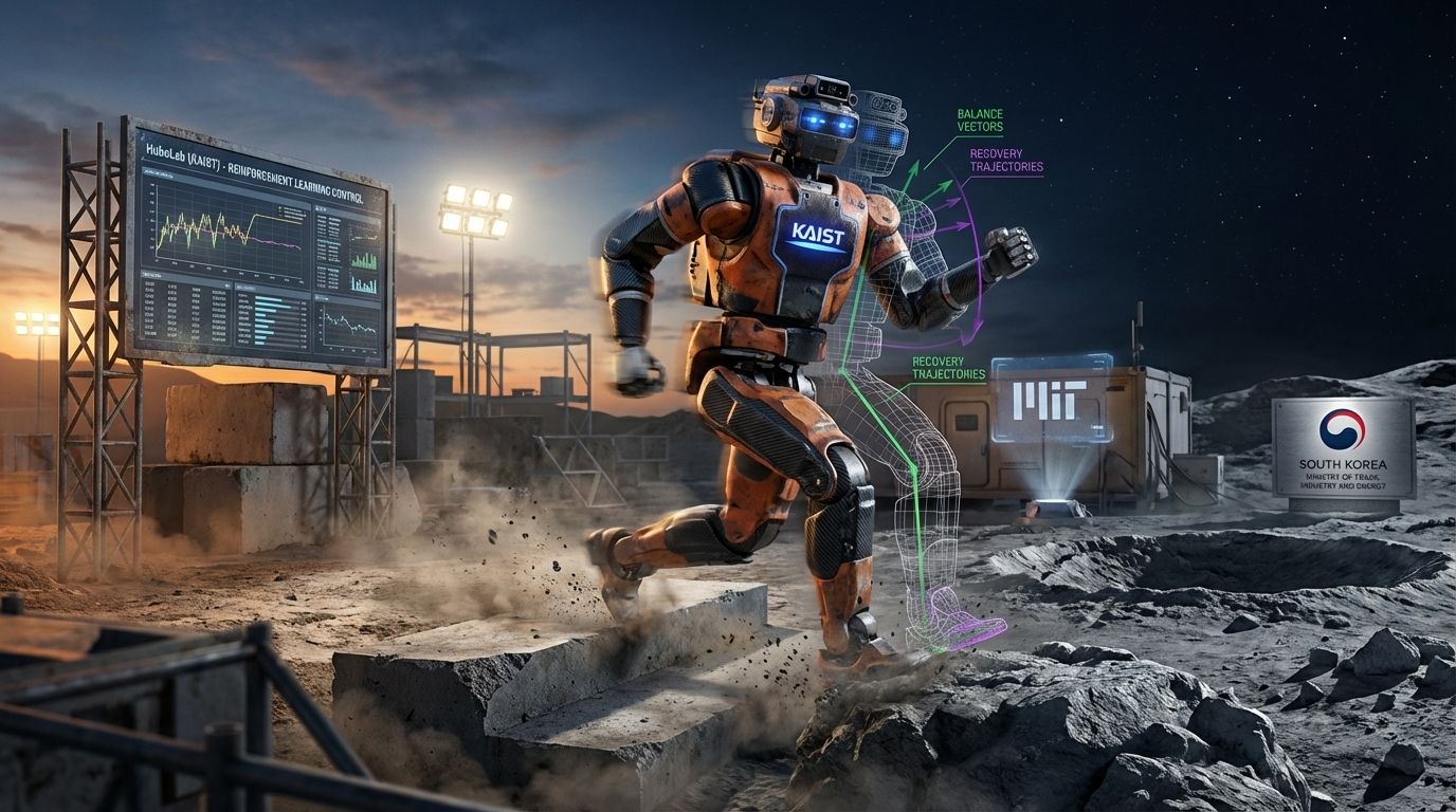 Integrated hardware and AI: KAIST’s HuboLab designed the humanoid’s motors, actuators, and controllers in house, allowing tight coupling between mechanical systems and a reinforcement learning controller that directly governs balance, motion, and recovery behaviors.