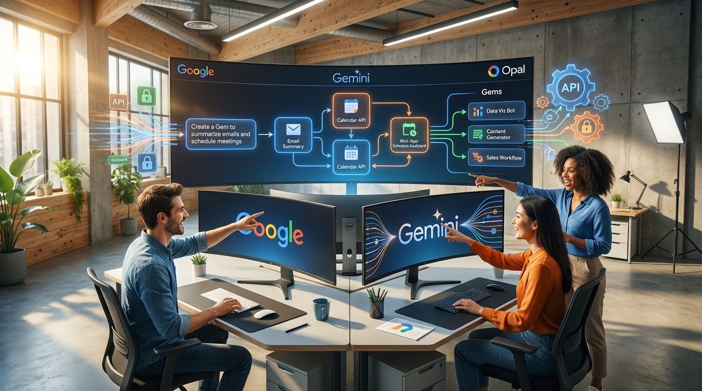 Google folded its ambient programming tool Opal into the Gemini web app, letting users create personalised mini‑apps—called Gems—by simply describing a workflow. A visual editor then chains steps using Gemini models. Advanced users can refine logic at Opal’s dedicated site.