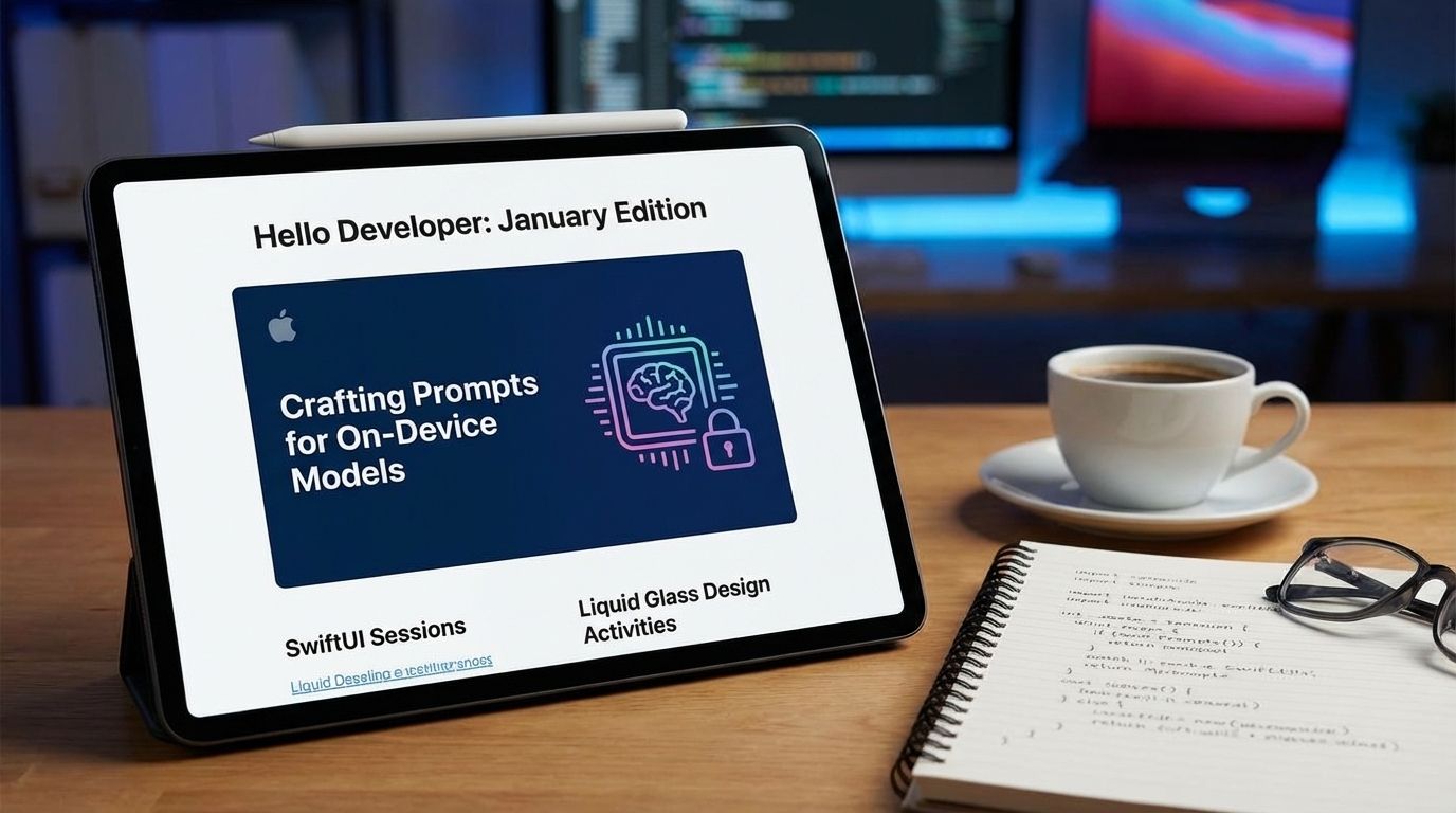 Apple’s January “Hello Developer” newsletter introduces guidance on crafting prompts for on‑device foundation models. The edition invites developers to SwiftUI sessions, Liquid Glass design activities and new tutorials. The prompt‑engineering article responds to developer requests for best practices, aiming to help build intelligent features that run privately on Apple devices.