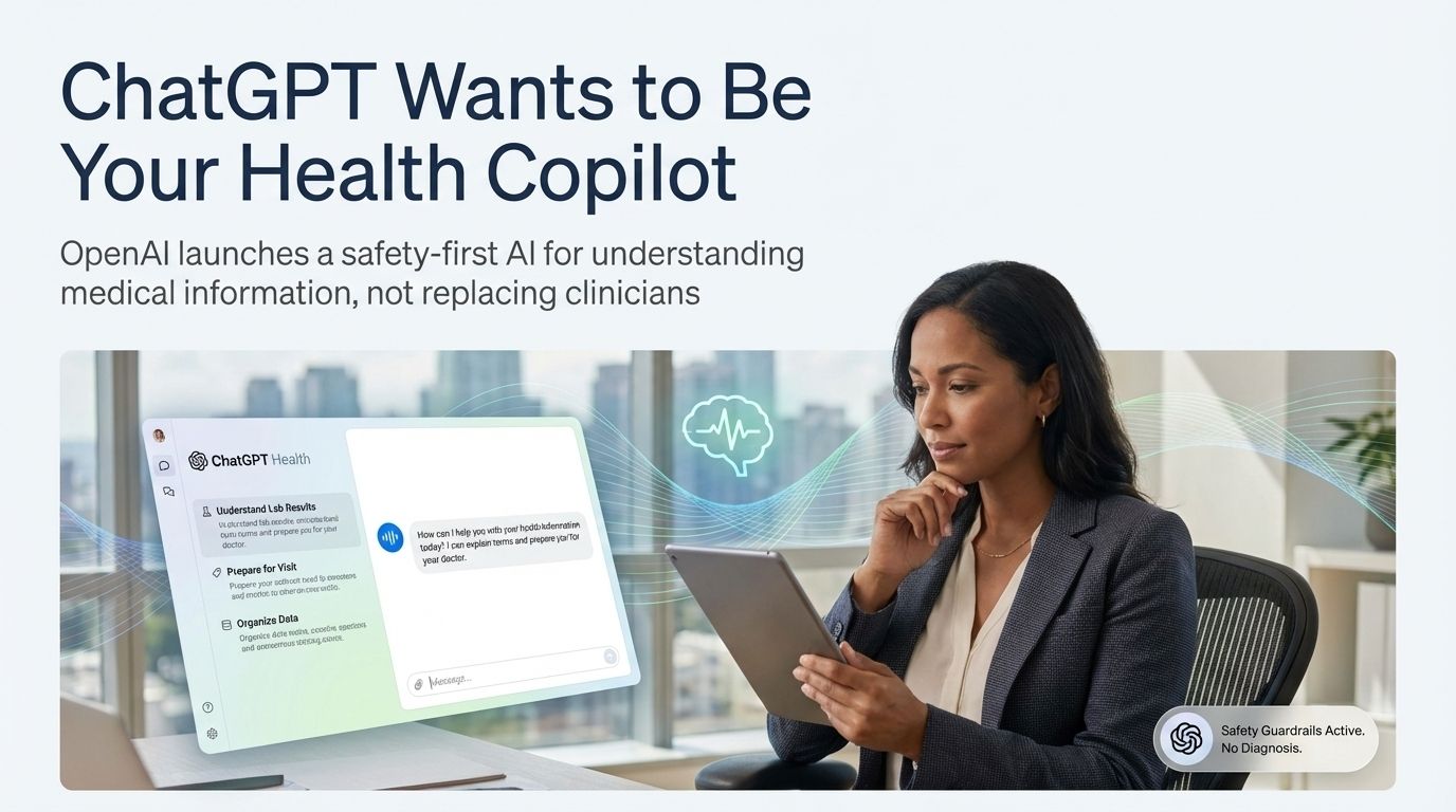 OpenAI has introduced ChatGPT Health, a dedicated health-focused experience inside ChatGPT designed to help users understand medical information, prepare for doctor visits, and organize health data. The feature includes medical safety guardrails, avoids diagnosis or prescriptions, and positions ChatGPT as a supportive health information companion rather than a replacement for clinicians.